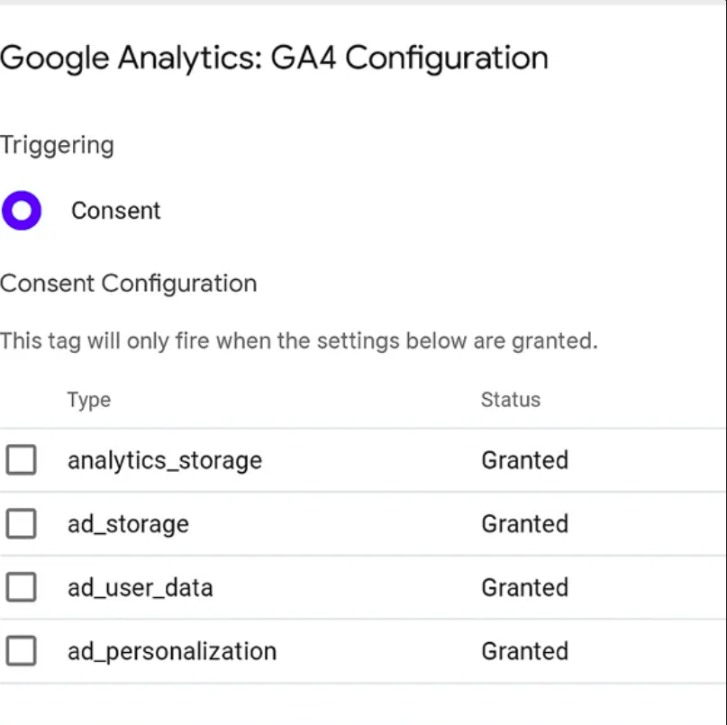 Configurez vos balises (Google Ads, GA4, etc.) pour qu’elles se déclenchent uniquement si les signaux nécessaires sont 'granted'.