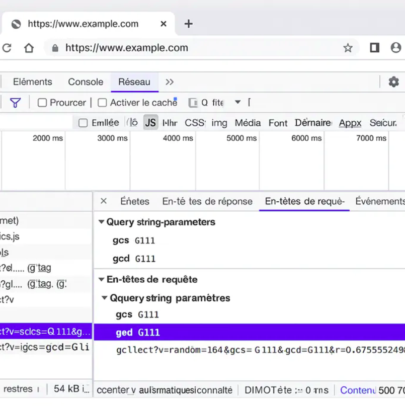Étape 2 : Inspecter les paramètres gcs et gcd dans l’onglet Réseau