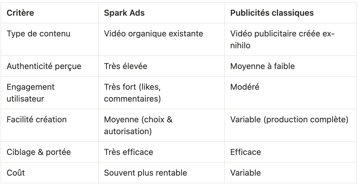 Analyse comparative : Spark Ads vs Publicités classiques TikTok